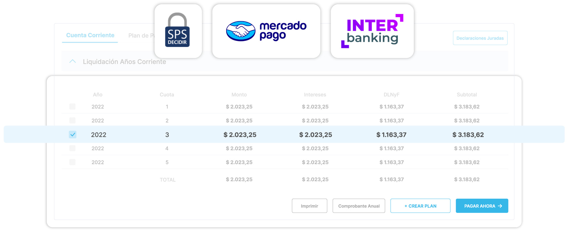 Sumamos la versatilidad a tus pagos en línea con la integración de DECIDIR e INTERBANKING, y la adición de Mercado Pago, ofreciendo una experiencia de pago más conveniente y segura.